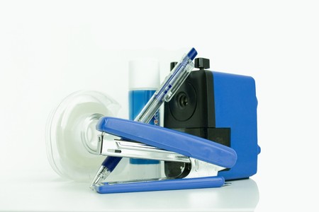 Stapler on a blue background