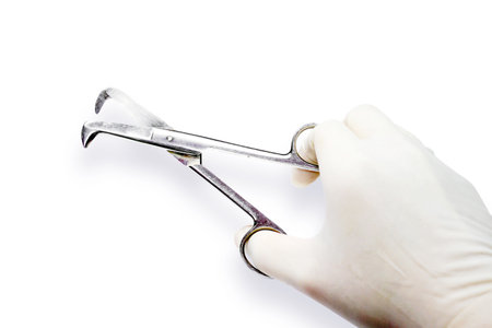 Surgeon Holding Bayonet Forceps With White Gloved Hand