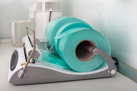 Medical sterilization packaging machine and roll pack for sterilized dental instruments.