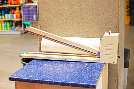 A factory for the production of blinds. Materials and equipment used for blinds manufacturing,