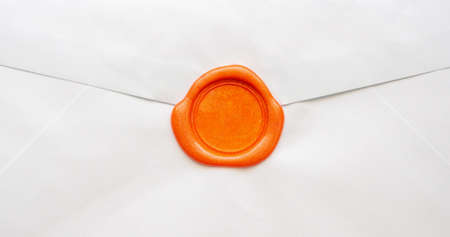 partial view of notary holding craft paper envelope sealed with wax stamp