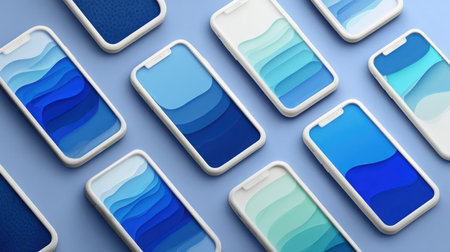 Smartphones with blue and white screen on blue background. 3d illustration