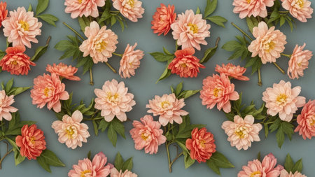 Flowers composition. Pattern made of pink peony flowers on blue background. Flat lay, top view, copy space
