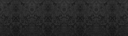 Old black anthracite gray gray worn grunge vintage shabby patchwork motif tiles stone concrete cement wall wallpaper texture background banner panorama