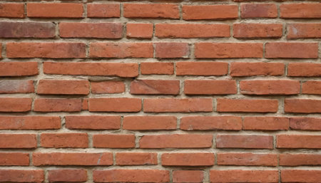 A full-frame image of a red brick wall, showcasing the varied textures and patterns, ideal for background or texture use. AI generation