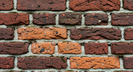 This close-up image showcases a textured red brick wall that is ideal for architecture, construction, and interior design projects with its unique shading and depth.