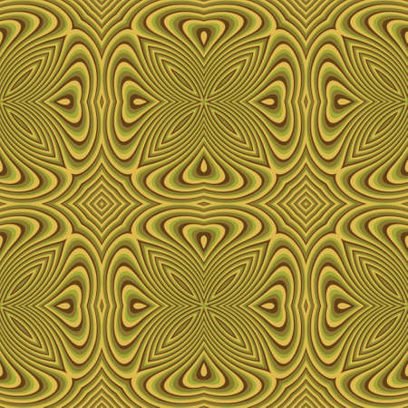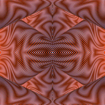 Exotic abstract symmetrical ornate background in boho colors and optical illusion effect. Vector wavy linear blending graphics. For create project of web design, cover, carpet, pillow printing.