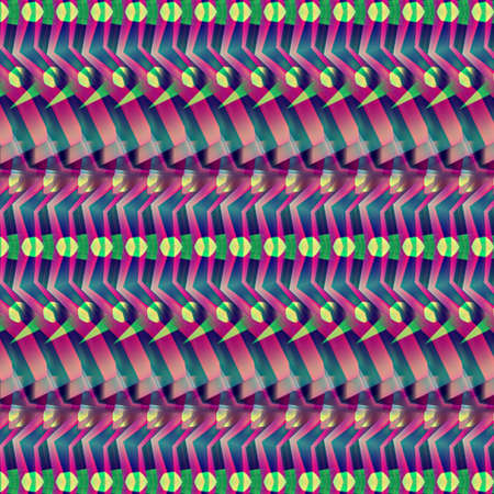 Colorful illusive abstract seamless pattern with overlapping geometric shapes. Vector symmetric lined transparent backdrop.