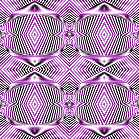 Illusion seamless pattern. Repeating psychedelic pattern with geometric shapes and optical illusion with distorted effect. Design element for print. Flat vector illustration