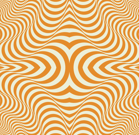 Ornamental Psychedelic Stripes Optical Illusion Seamless Texstured Background in Coral Colors Tones. Trendy Colors of The Year for web design, business card, mobile apps, banner, package.