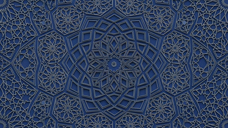 Arabic pattern on blue background. 3d rendering. Computer digital drawing.