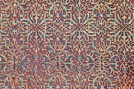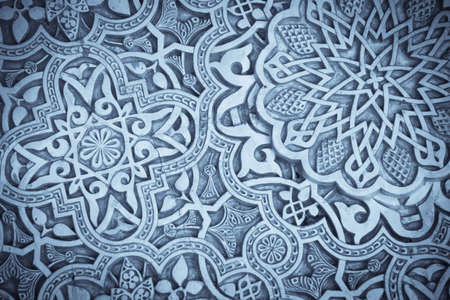 Close up shot of some Arabic decorations at the Alhambra palace in Granada, Spain.