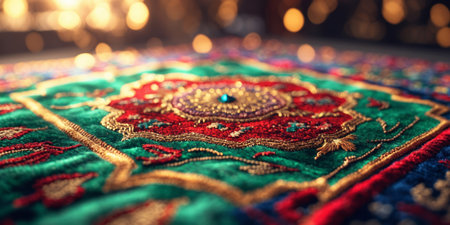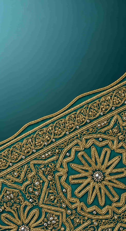 Intricate embroidery on a vibrant green textile showcasing traditional patterns and craftsmanship