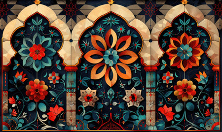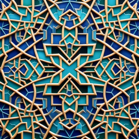 Intricate arabesque tile pattern showcasing detailed geometric designs in vibrant colors