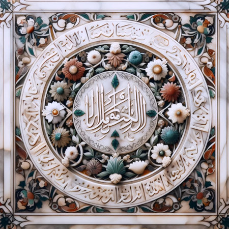 This image showcases intricate Arabic calligraphy with golden accents on a richly textured background, highlighting cultural beauty and artistic craftsmanship.