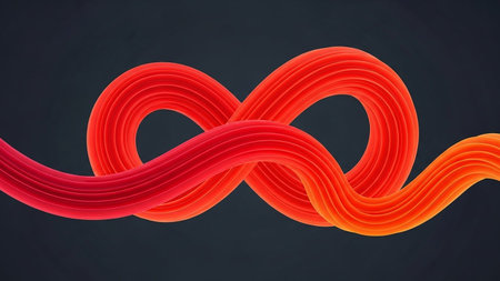 A fluid infinity symbol with a gradient of red to orange colors twists across a dark background, showcasing smooth curves and a sense of continuous...