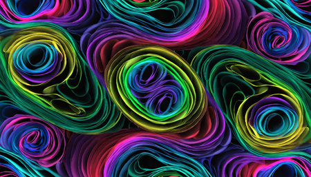 A dynamic, D textured background featuring swirling ribbons and organic curves in bright colors, offering a lively and modern visual appeal