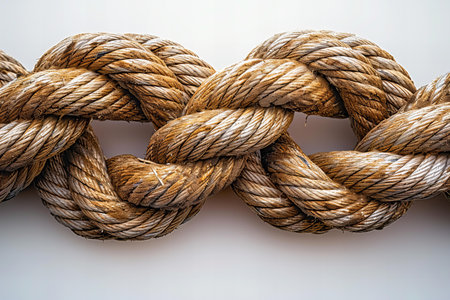 Diverse ropes symbolize teamwork and unity in a corporate setting showing cooperation and collaboration among team members. Concept Corporate Unity, Teamwork Symbol, Diverse Ropes
