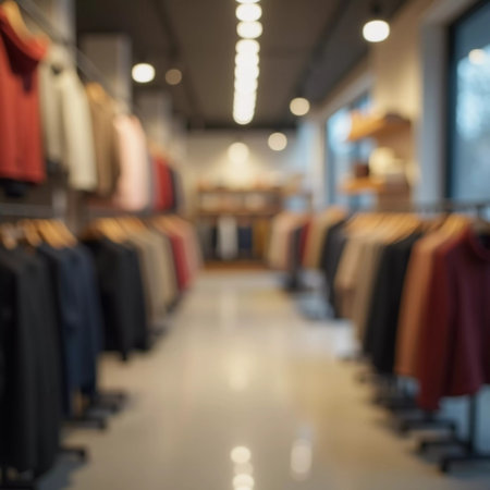 In a contemporary clothing store, racks display an assortment of fashionable apparel. The bright lighting enhances the inviting atmosphere, making it ideal for shoppers to explore. Bokeh. Generate AI.