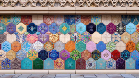 Vibrant display of decorative tiles showcasing intricate patterns and colors. This artistic arrangement reflects cultural heritage and craftsmanship in design.