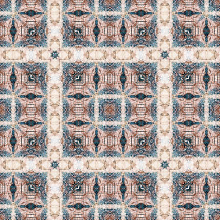 Retro boho geometric kaleidoscope scarf pattern background. Colorful vintage azulejos effect damask shawl textile print tile.
