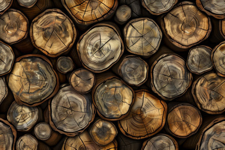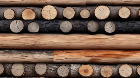 a background composed of cut logs, showing the intricate details and textures of the wood. SEAMLESS PATTERN. SEAMLESS WALLPAPER