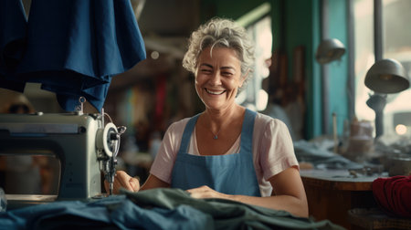 beautiful mature woman Tailor working in the shop