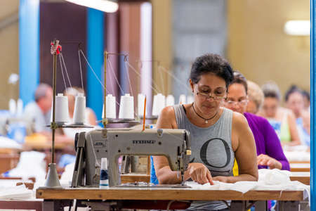CUBA, HAVANA - MAY 5, 2017: Workers at the garment factory. Copy space