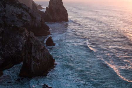 Cliffs and rocks rasing in at Atlantic coast of Portugal near Cabo Da Roca.