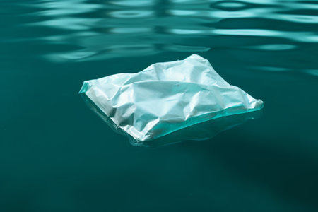 Floating transparent plastic bags and bottles underwater highlight the global issue of marine pollution and environmental damage.
