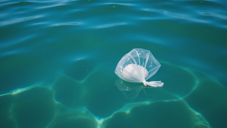 Plastic bag floats in clear ocean water emphasizing marine pollutions environmental impact
