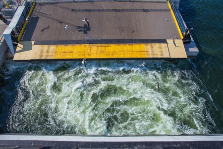 City Stocholm, Sweden. Port, water and urban view. Sunny day, big ship. Travel photo 2018