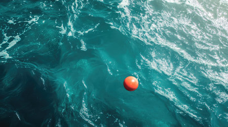A vibrant red buoy floats gracefully amidst the tranquil blue ocean waters, reflecting sunlight and adding a splash of color to the serene marine landscape.