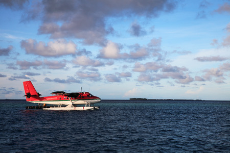 Male, Maldives - November 23, 2014: seaplane prepares for take-off. to some hotels in the Maldives can only be reached in this way