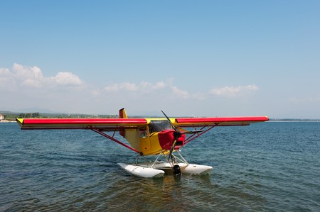 Yellow water air plane at Greek coast