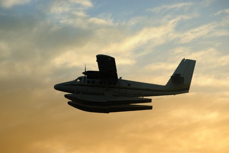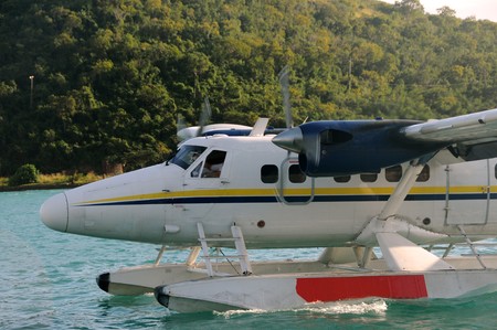 A seaplane ferrying holidaymakers around the Maldives in the Indian Ocean
