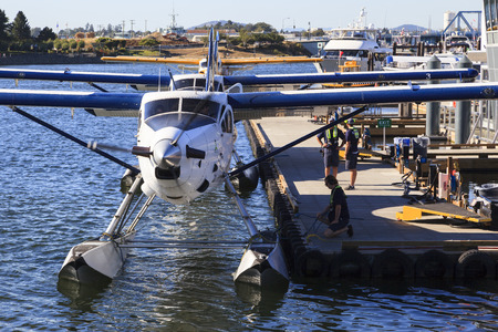VICTORIA, BC, CANADA - JULY 24 2016: Float-plane traffic in the inner harbor. This transportation is vital and very frequent between Vitoria and Vancouver, also the flight is very pictures.