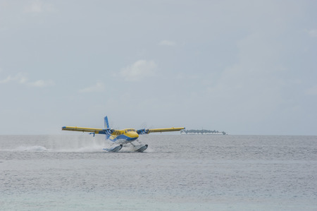 Male, Maldives - November 22, 2014: seaplane prepares for take-off. to some hotels in the Maldives can only be reached in this way