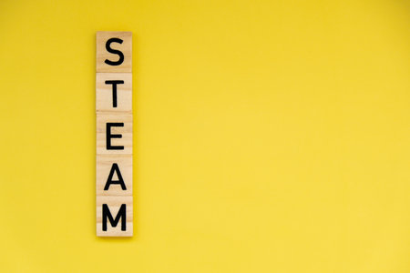 STEAM inscription. Science Technology Engineering Arts Mathematics. Concept of education innovation for students at school and homeschool. Text single word