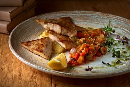 The food in the restaurant. Food styling and restaurant meal serving. Gourmet restaurant menu concept. Creative stylist restaurant