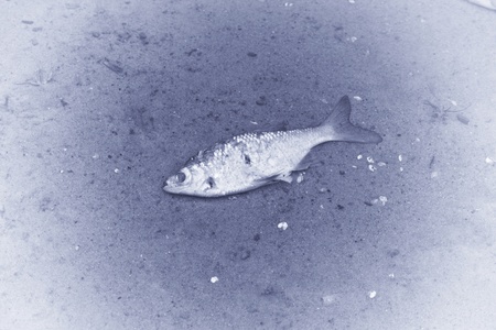 Dead fish on the beach. Water pollution concept