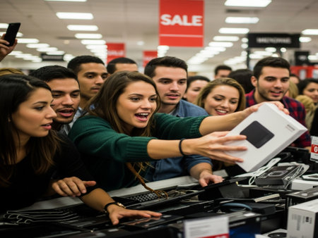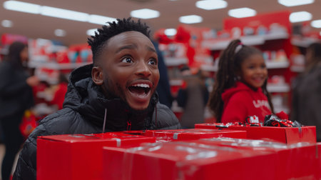 joyful family shares excitement while shopping on Black Friday discovering amazing deals in a bustling retail store filled with vibrant displays and holiday spirit.