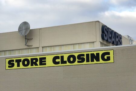 Signs on a local Sears store indicating they are going out of business. Sears was once America's largest retailer.