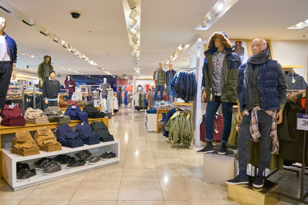 MILAN, ITALY - CIRCA NOVEMBER, 2017: clothing on display at GAP store in Milan. GAP is an American worldwide clothing and accessories retailer.