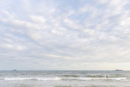 Beautiful scenery view white clouds on blue sky over sea with reflection in the sea surface blue ocean sea and clouds on horizon