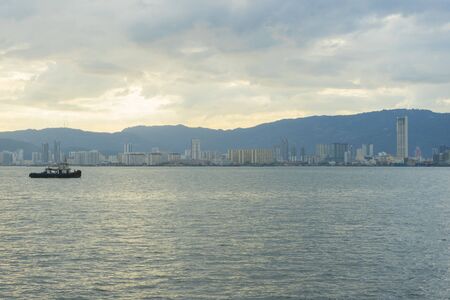 Georgetown, Penang/Malaysia - Feb 28 2020: Ferry cruise at sea toward Penang Island.