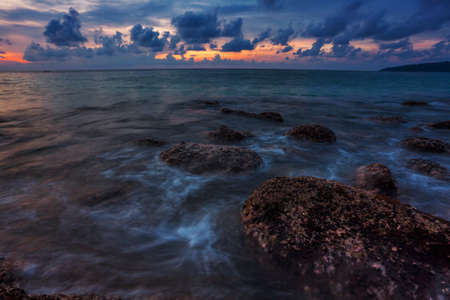 Beautiful sunset and sea waves of the natural