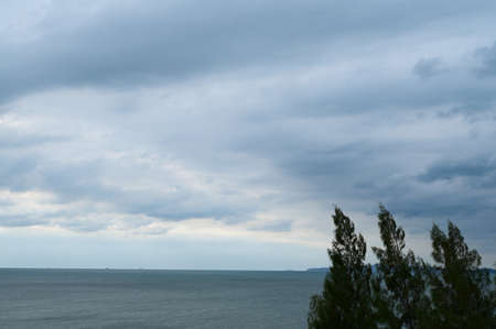 Andaman Sea before a thunderstorm. Koh Lipe Sunrise beach It's starting to rain. There are large and dark storm clouds in the sky. landscape.