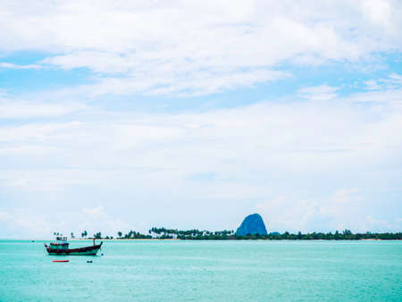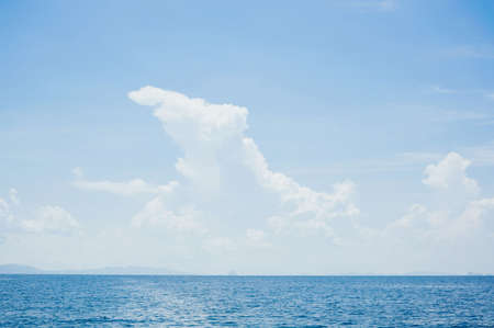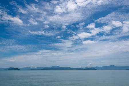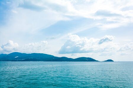 Beautiful outdoor sea ocean view with island and white cloud on blue sky for holiday vacation travel background