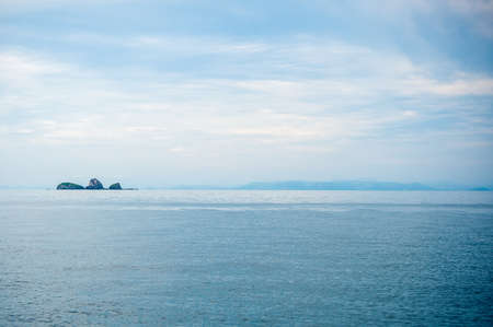 Island in blue sea, calm sea landscape with blue water